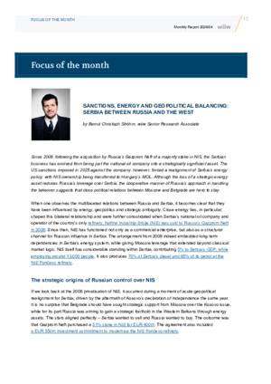 Focus of the month: Sanctions, energy and geopolitical balancing: Serbia between Russia and the West